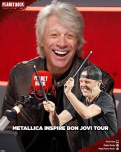 Rock legend Jon Bon Jovi has revealed that he’s drawing inspiration from Metallica’s successful M72 World Tour as he plans Bon Jovi’s 2026 global tour. Speaking in a recent interview with Planet Rock, the frontman explained how Metallica’s “No Repeat Weekend” concept encouraged him to rethink how Bon Jovi will approach live performances next year.